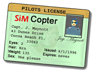Page. Hints, tips, cheats and tricks for Maxis Sim Copter. Career goal stratagies The basic objective of SimCopter is to complete a series of missions (rescue, transport, medivac, etc) within a given amount of time to earn money and award points. Earn enough money and you can purchase a better helicopter. Earn enough career points and you can advance to the next city. There are 30 cities in all. Complete the last city and you will be treated to a brass band and maybe a little something extra. Below are the basic mission descriptions, a brief explanation of how to complete them, and what obstacles to avoid. This game is pretty self explanatory, but there may be a few points not covered in the manual. All input, undocumented features and newly discovered Easter eggs are welcome here and will be included upon submission or request. Your first assignment as a lowley noobie of course is traffic duty. Fly to the scene of a traffic jam and press F6 (megaphone) to disperse traffic. If you get really angry you can “bump” a car to turn it over and set it on fire. This will actually reduce your points and earnings but sometimes it’s worth it. You will also need to be careful that your Police, Fire and Ambulance vehicles do not get stuck in traffic, or they will be unable to respond to a dispatch. Easy. Pick up a suit, drop ‘em off. Click the M+ or M- button on your radar console to determine the destination of a Transport request. Fly to the scene of a fire and press F2. A fire truck from the nearest fire department will be dispatched to the scene and extinguish the fire. You can also use your bambi-bucket or water cannon to put out a fire. Fly to the nearest water source, (lake, river, ocean) and lower your bambi-bucket into the water. Note your onboard water tank will fill up. (The more water, fuel and passengers you carry, the slower and less maneuverable your chopper will be). Fly to the fire, hover overhead and release your water tank, or spray the fire with your water cannon (if you have bought one), The water cannon will actually generate recoil and push you backwards. Be careful never to fly directly into a fire or your chopper will explode. Some fires may have citizens trapped on the roof. Hover overhead and lower your rescue harness (if you bought one). The citizen should automatically grab on to the harness allowing you to hoist them into your chopper. You can also in some cases land on the roof or hover slightly above and they will automatically enter the chopper. Once you have picked up all trapped citizens, set them down safely on the ground to complete the mission. See "Glitches" for info on citizens stuck between floors. Overturned boats have a tendency to drift and may be slightly down current from their original coordinates. Hover overhead and use your rescue harness to pick up stranded boaters. If you so much as “tap” an overturned boat, it will sink, injuring the stranded boater. Be careful. Sometimes you can hover just above the water and pick up a stranded boater, but it’s pretty risky. Return rescued boaters to shore to complete the mission. Crashed airplanes or the UFO will sometimes turn into an overturned boat rescue mission. This is the most fun and dangerous rescue of all, mainly because you are picking up victims from the roof of a moving train. Hover overhead and lower your rescue harness to pick up stranded passengers. You will basically have to match the speed of the moving train while avoiding obstacles like overhead wires, buildings and tunnels. Hoist passengers into your chopper and return them safely to the ground to complete the mission. Another strategy that works, but is a bit more hairy, is to fly well ahead of and into the path of the oncoming train. Hover just above the ground (about 10 feet off the ground) and wait for the train to pass just beneath you. If executed correctly, the stranded passengers will literally be “stuffed” into your chopper without ever having to move or use your rescue harness. If done incorrectly, usually the train will crash and burn killing all onboard, (oops!) If you do not perform the train rescue, the train will crash and burn anyway. Fly to the scene of a medical evacuation and press F3. An ambulance from the nearest hospital will be dispatched to the scene. When it arrives, a paramedic will exit the vehicle, search the area for victims, and carry them back to the ambulance. You can also fly to the roof of any hospital, pick up a paramedic and fly him to the medivac scene. The paramedic will automatically exit the chopper and return with any victims in the area. You must then fly the victims back to the Hospital rooftop where they will be unloaded (and fall over). As a pilot, you can also manually exit your chopper and carry your own victims back to the chopper (press enter to pick up/drop a victim). The more seats you have in your chopper, the more police, paramedics, and rescue – medivac victims you can carry. I noticed that sometimes when medivacing a nuclear power plant, the rescue victims will be dogs. I guess it’s a mutation thing. If you take too long to perform a medivac, your victims will perish. Fly to the crime scene and press F4. A police car from the nearest police station will be dispatched to the scene. When it arrives, a police officer will exit the vehicle and apprehend any suspects in the area. Use your spotlight to help guide police to fleeing suspects. You can also pick up a cop from any police station rooftop, and deposit them at a crime scene. This is almost mandatory for areas not accessible by road. If a suspect is fleeing in a getaway car (it’s always the green El Camino) press F5 and follow him. F5 will dispatch a patrol car from the nearest police station which will follow your spotlight, (you will notice a mobile “blue-staff” indicator). When the patrol car catches up with the getaway car, the suspect will pull over and exit the vehicle, at which point the officer will ap